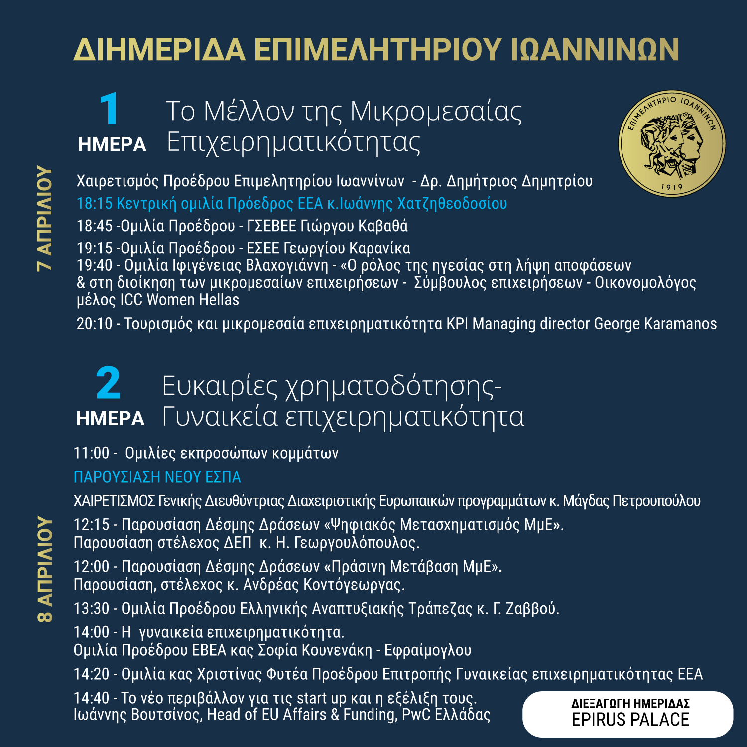 ΔΙΗΜΕΡΙΔΑ ΕΠΙΜΕΛΗΤΗΡΙΟΥ ΙΩΑΝΝΙΝΩΝ ΤΟ ΜΕΛΛΟΝ ΤΗΣ ΜΙΚΡΟΜΕΣΑΙΑΣ ΕΠΙΧΕΙΡΗΜΑΤΙΚΟΤΗΤΑΣ